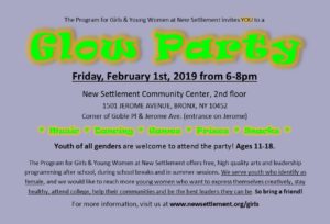 Friday, February 1st, 2019 from 6-8pm We’re throwing a GLOW PARTY with dancing, DJ, games, prizes and more!